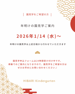 年明けの園見学のご案内は2026年1月14日(水)から実施いたします。