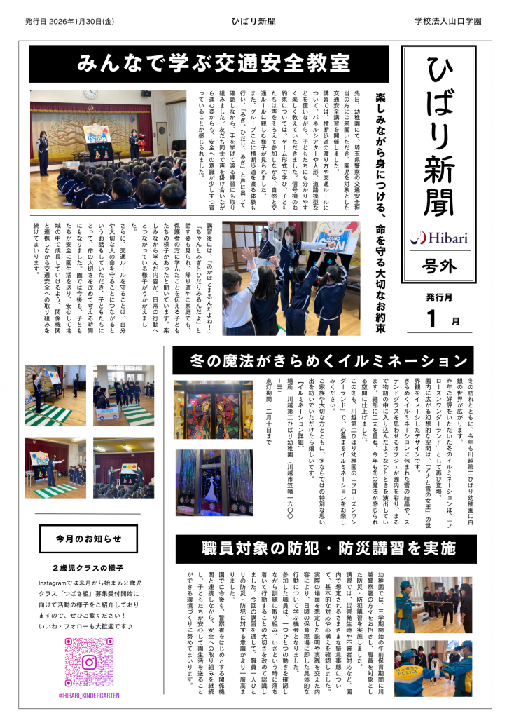 ひばり新聞に号外が登場!幼稚園のイベントや出来事をお伝えいたします♪