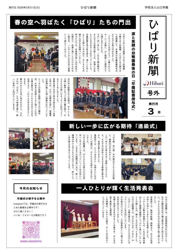 ひばり新聞に号外が登場!幼稚園のイベントや出来事をお伝えいたします♪