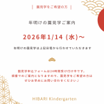 2025年12月29日の記事一覧 2025.12.29 年末年始に関するご案内 川越川越第二川鶴 園見学お知らせ 最新の記事 年末年始に関するご案内 ひばり新聞号外12月号 園見学のご案内 ひばり新聞号外11月号 【リクルート】ひばり幼稚園の先生を目指す皆様へ カレンダー <2025年12月 日 月 火 水 木 金 土 123456 78910111213 14151617181920 21222324252627 28293031 カテゴリー リクルート (11) 日常 (87) 園見学 (12) ひばり新聞号外・四季報 (20) 共働き (2) 未就園児 (71) 教育活動 (103) お知らせ (176) FAQ (6) スクール 川越 川越第二 川鶴