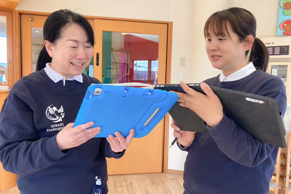 各クラスにiPadを導入し、ご連絡の作成などもアプリを活用して行い業務効率化を図っております。